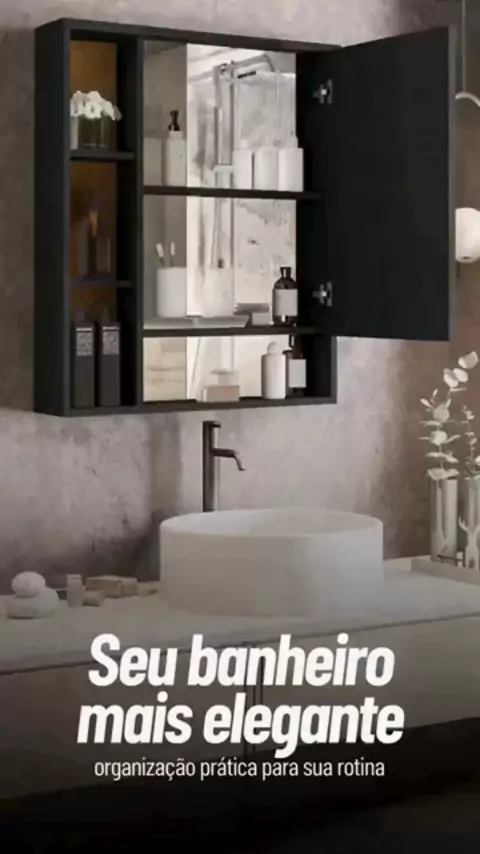 #designdeinteriores Armário de Banheiro com Espelho Suspenso: Organize Espaços Pequenos com Estilo Descubra como transformar seu banheiro com um armário com espelho suspenso moderno e funcional. A Espelheira Olímpia possui prateleiras internas e externas ideais para organizar perfumes, cremes, sabonetes e itens do dia a dia. Perfeita para banheiros pequenos e lavabos, com design compacto, elegante e fácil de instalar. Disponível nas cores branco, preto e amadeira