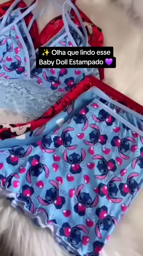 ✨️ Babydoll Estampado ✅️ Link na Bio e ID nos comentários. #babydoll #pijama #camisola #roupafeminina #viral