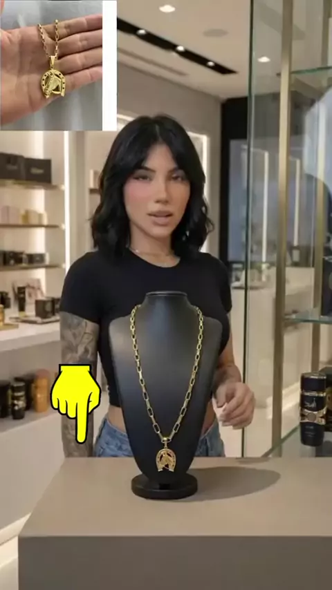 Corrente cadeado Tijolinho Pingente Cavalo Ferradura Dourado Banho Ouro