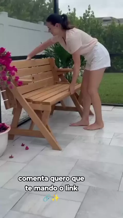 O móvel que eu não sabia que precisava até ver este vídeo! 🤩 De banco de jardim a mesa de piquenique em segundos. Praticidade é tudo! ✨ #casa #moveis #maisviews #dicas #jardim