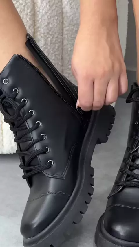 Bota Feminina Cano Curto de Couro Super Confortável Ajustável de Cadarço Coturno #EstrelaDeFamília #KwaiFamilia #bota #coturno