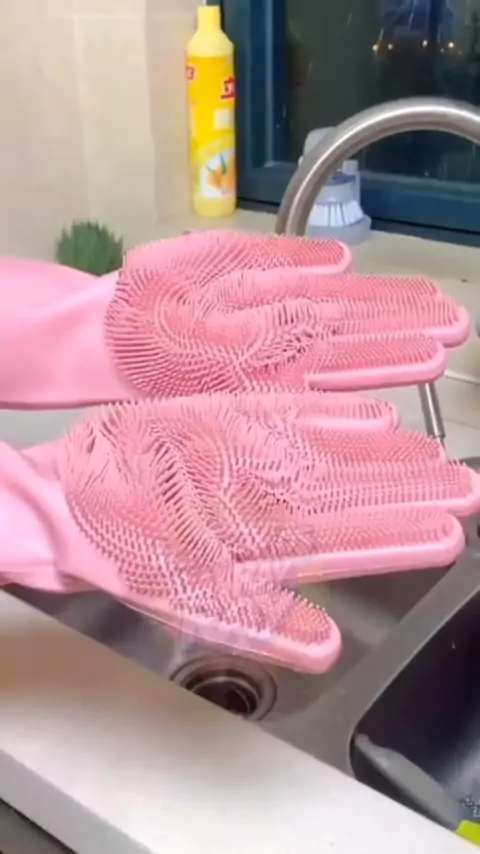 Luvas de silicone com cerdas #luvaparalavarlouça #luvadesilicone #louça #lavar #luva