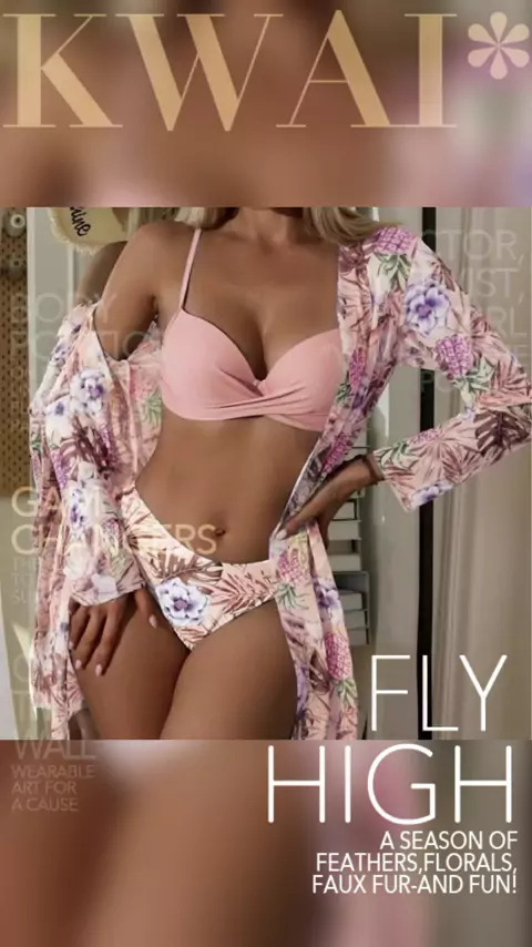 Dê uma olhada em 3 Três Peças Conjunto Biquíni Feminino Fato de Banho Europeu Americano Novo Estilo Fato de banho malha Blusa - QUALY