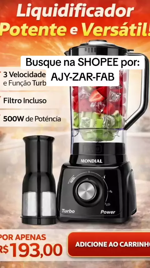 🍹 Quer bater suas receitas rapidinho e sem sujeira? Confira o Liquidificador Mondial 3 Velocidades 500W com Filtro 127V por apenas R$183,35 na Shopee! 💡 3 motivos para levar o seu: Potência de 500W para misturas perfeitas 3 velocidades para controlar tudo do jeito que você quer Filtro incluso para sucos lisinhos sem caroços ✨ Busque pelo ID AJY-ZAR-FAB ou digite QUERO que te envio o link! Siga curta e compartilhe 💖 #publi #cozinhapratica #eletrodomesticos liquidificador Mondial, 500W, filtr