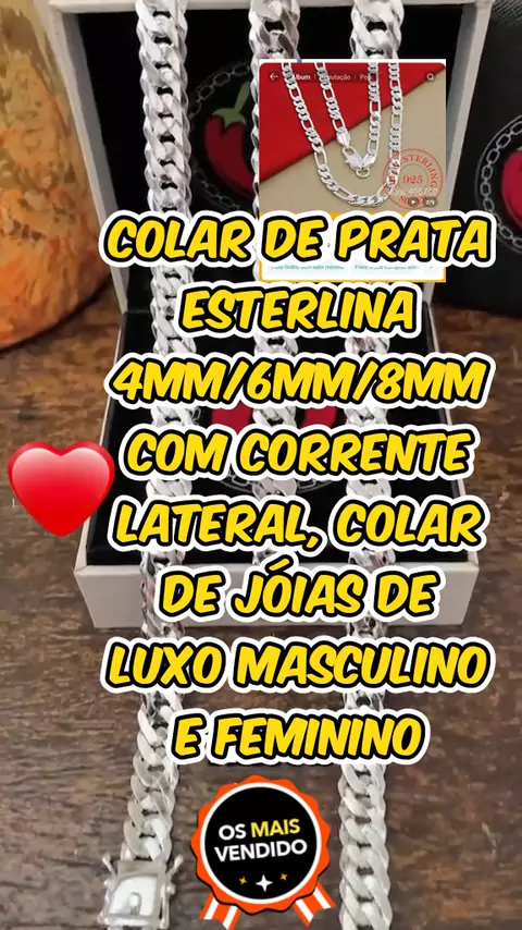 Colar de prata esterlina 4mm/6mm/8mm com corrente lateral, colar de jóias de luxo masculino e feminino