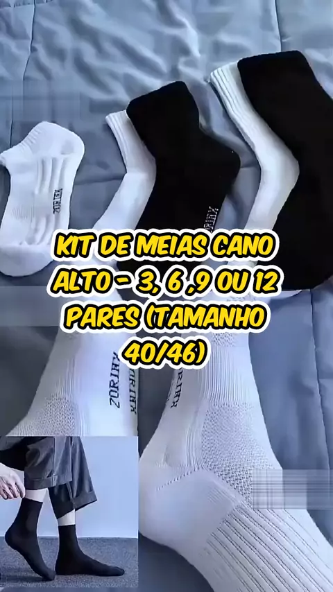 Kit de Meias Cano Alto - 3, 6 ,9 ou 12 Pares (Tamanho 40/46)