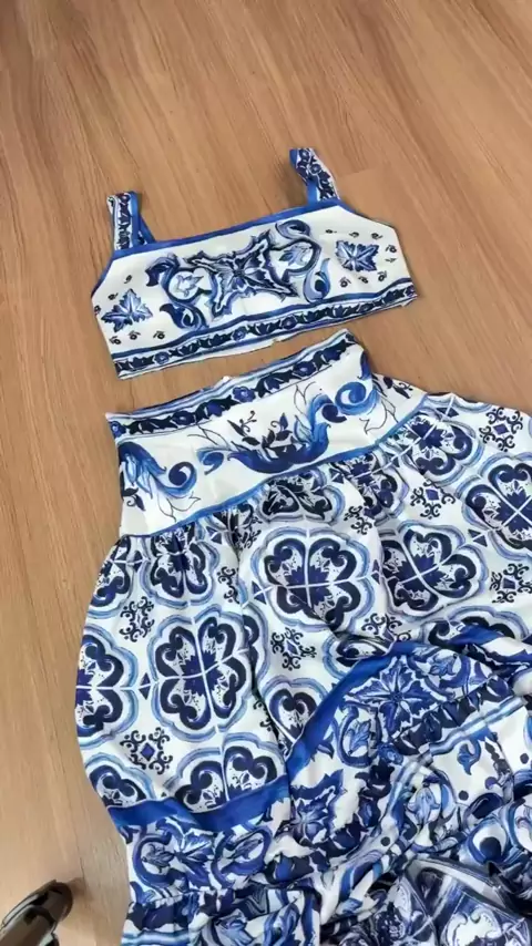 Moda Feminina Sexy Elegante Fatos De Estamparia De Verão Tops De Tanque + Cintura Alta Midi Pleat Half Dress Two Piece Sets O link está nos comentários, copie e cole no navegador. #modafeminina #lookdodia #conjuntofeminino #modaverao #achadinhosdashopee