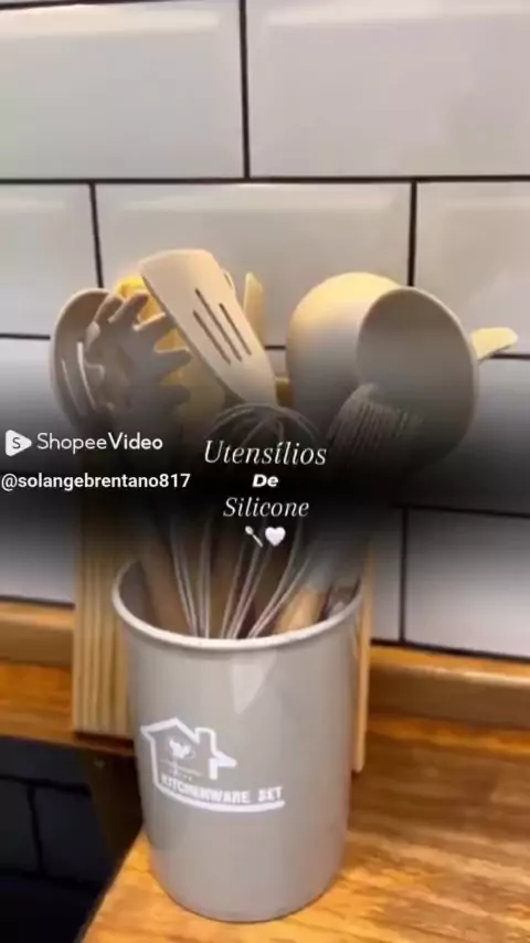 Kit C/12 Utensílios De Cozinha Silicone Cabo Madeira! #BlackFriday