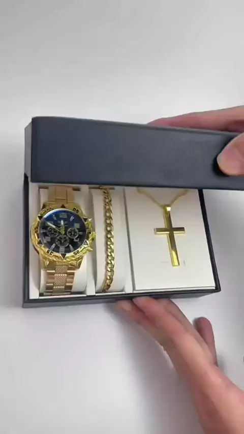 Relógio Dourado Masculino Com Puseira e Cordão em Aço Ótima Qualidade #achadinhos #promoçao