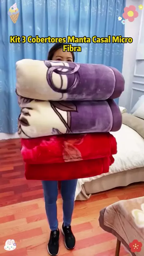 Kit 3 Cobertores Manta Casal Micro Fibra #rodeio #shope #Cobertores