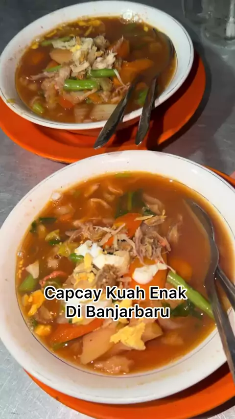 Malam” makan capcay kuah, nikmat Uwaww Salah satu capcay yang enak disini nih sayurannya fresh , kuah nya manis gurih sedikit asem segar , wajib makan pas anget” biar nikmat. . . . 📍 Warung Rasa Baru Jl Bengkirai, Banjarbaru Order Capcay kuah 2 + air es 2 = 40k . . . #banjarbarufoodies #banjarbaru #capcay #warungrasabaru