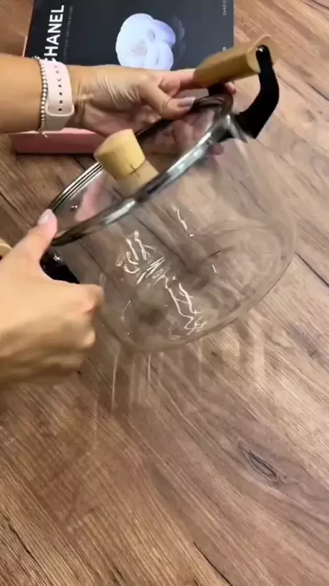 Panela de Vidro Borossilicato 3,5L com Tampa e Alças de Madeira – Elegância e Praticidade na Cozinha #casa #cozinha #foryou