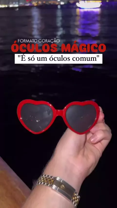 | ❤️ Colocou o óculos... BAM! Agora tudo vira coração! Luz? Vira coração. Gente bonita? Coração. Até o poste da rua? Coração também. Se o mundo tá sem amor, é porque você ainda não usou o óculos mágico coração vermelho. Serve pra se apaixonar, tirar foto top, ou só ver a vida mais linda mesmo. Coloca e vê a mágica acontecer. Literalmente. #ÓculosMágico #TudoViraCoração #EnxergandoAmor