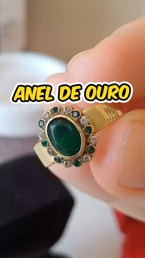 Anel de ouro maravilhoso com pedras verdes. Será que são pedras preciosas naturais?