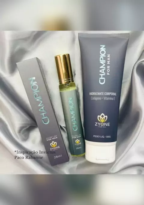 Champion - O kit ideal para homens sofisticados e elegantes! Amadeirado aquático. Notas oceânicas, tangerina, Jasmin e madeira guaiac. O sentimento de elegância e fineza condiz com a personalidade implacável do homem fino e elegante. Semelhança olfativa do famoso Invictus Paco Rabanne. Faça sua encomenda - 68999813258 #perfumesfemininos #perfumesmasculinos #perfumesimportados #perfumes #zyonecosmeticos