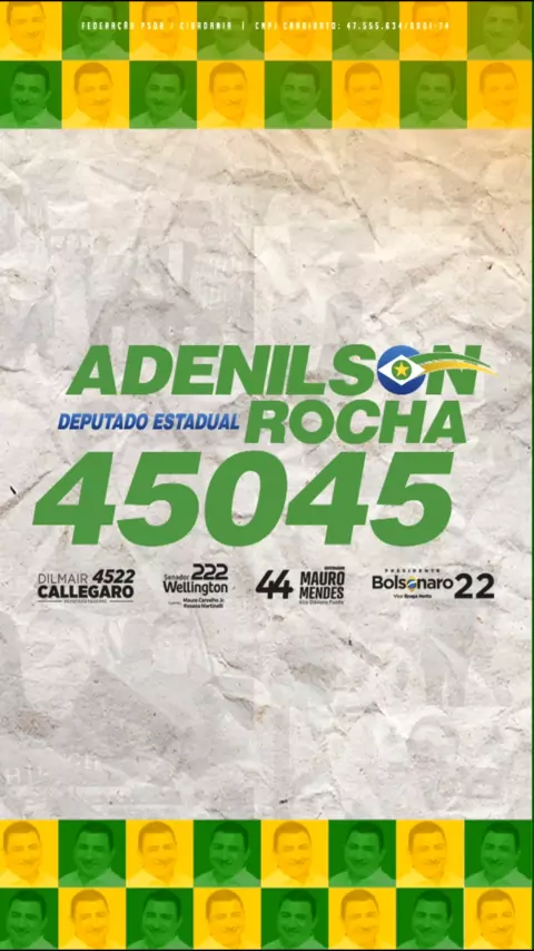 AGORA O NORTÃO É ADENILSON ROCHA 4️⃣5️⃣0️⃣4️⃣5️⃣ Hoje começo oficialmente uma nova caminhada que eu sonhei e me preparei por anos. Eu tenho orgulho do nosso Nortão, e quero ser seu Deputado Estadual. Ao longo da campanha conversarei com você, para apresentar as nossas ideias, as nossas propostas que irão beneficiar todo o nortão. Eu convido você para fazer parte do TIME DE ROCHA! Vamos juntos nessa caminhada, compartilhe, convide seus amigos e familiares, posso contar com seu apoio?