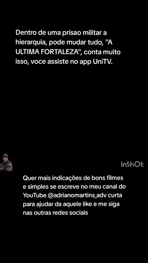 Quer saber como e difícil uma prisão militar, assista, "A ULTIMA FORTALEZA", as regras hierárquica foge completamente da realidade, o ego do ser humano pode atingir seus limites, esse filme conta a história de um grande comandante, que perde seu posto, mas nunca apaga sua história. Quer assistir esse grande filme, veja no app UniTV, quer mais indicações de bons filmes, se escreve no meu canal do YouTube @adrianomartins_adv, da um like para fortalecer a página e me siga nas outras redes sociais #