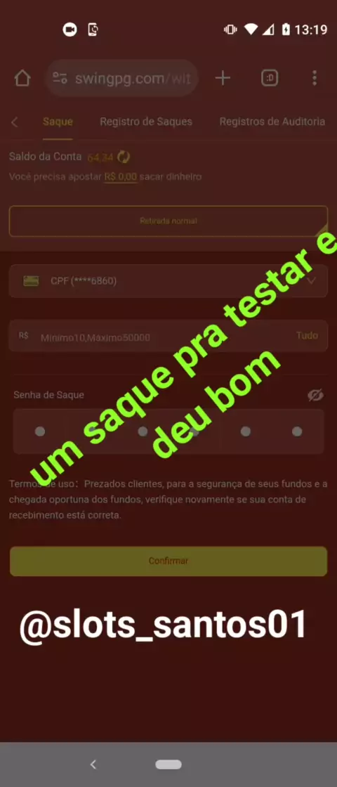 um saque de 64 pra testar 🤑😱 testa e aprovada link no story do insta!!! #slots #ganhandodinheiro #saque #Testando #plataformas