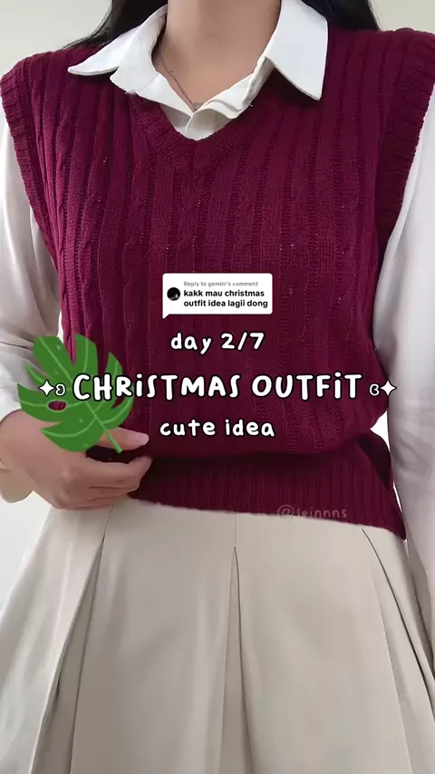 Replying to @gemini day 2/7: christmas outfit edisi cutee 💖✨ buat yang suka dressy, cocok banget nii buat dipake christmas dinner/lunch 👀 btw knitvestnyaa murcee🔗03b #gayadi #fashiontok #Fashion #koreanstyle #christmasoutfit