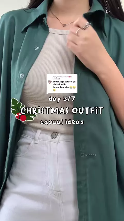 Replying to @Princessien🎀 outfit natal edisi casual🎄 buat yang suka simple outfitt, boleh dicoba nihh! cocok buat christmas gathering bareng temen atau keluargaa 👀 btw pake kemeja super ovz kek gini bikin look auto kerenn!🔗133 #gayadi #fashiontok #Fashion #koreanstyle #christmasoutfit