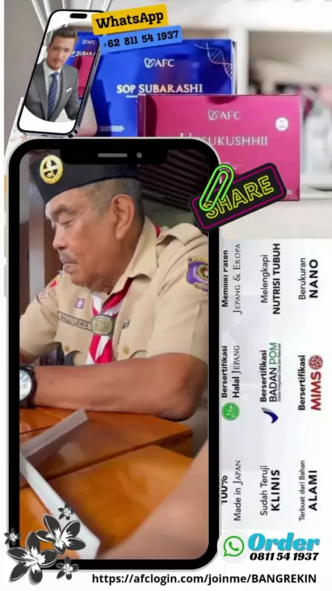 Ayo rekan² di Gerakan Pramuka kakak² Pembina dan rekan² Pelatih bila yang mengalami keluhan kesehatan, ini terbukti asli 💯% Farmasi Jepang AFC adalah produk medis non-kimia yang memberikan nutrisi untuk sel-sel di dalam tubuh sehingga bisa melawan berbagai gangguan kesehatan. Info lebih lanjut klik : https://afclogin.com/joinme/BANGREKIN atau https://wa.me/message/LSNM2QIR7I4CK1 https://bangrekin.my.canva.site/afc-life-science-indonesia Best Regards, AFC Lifescience #ginjal