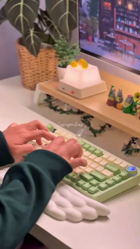 Ever since I moved to Surabaya, I haven’t come across wide green fields as often. That’s why I brought the greenery into my setup 🌱✚ And this time, I went for a beautiful matcha green keyboard — the Leobog HI75C Pro 🍃🌿🪎 • Keyboard: Leobog HI75C Pro (Green) • Switch: Akko Creamy Blue Pro V5 • Keycaps: AKKO Matcha (PBT Double Shot) #keyboardasmr #typingtest #keyboard #leoboghi75cpro