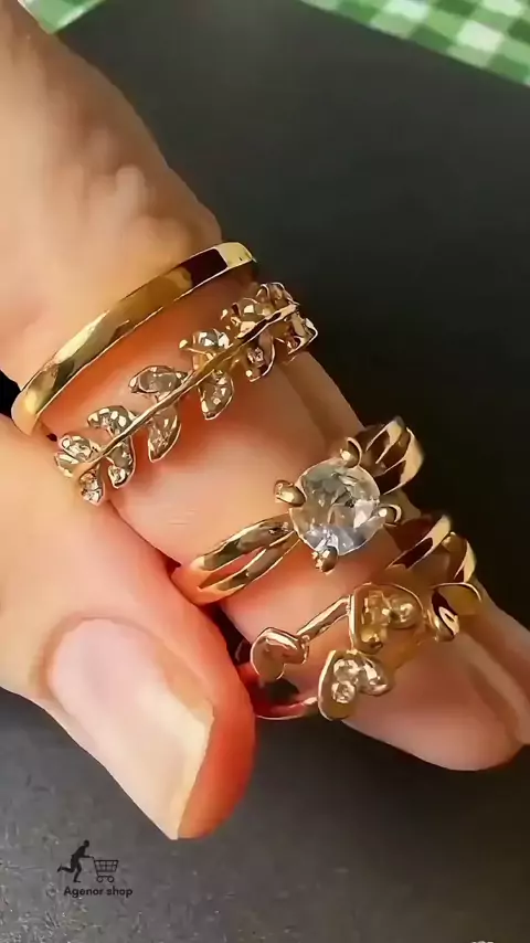 conjunto com quatro anéis Dourado prateado #aneis