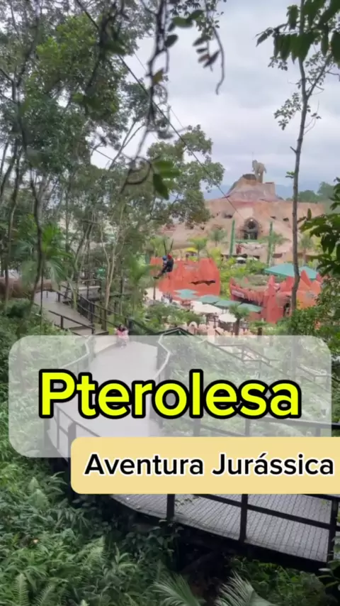 Acham loucura???? Eu tô até agora sem acreditar que permiti isso! Dentro do nosso queridinho parque dos dinossauros Aventura Jurássica, tem a Pterolesa. Uma tirolesa que praticamente atravessa o parque, passando do lado do gigante Tiranossauro Rex e finalizando na caverna do vulcão. Permitido para crianças a partir de 10kg. Elas vão junto com os pais, claro. Se eu já amava levar ele no parque, agora mesmo ficou maravilhoso!