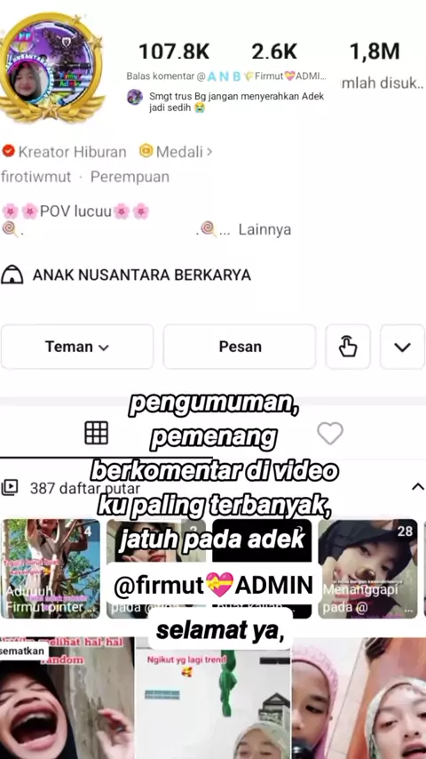 Menanggapi pada @β€Œβ€ŒπŸ‡¦β€Œβ€ŒπŸ‡³β€Œβ€ŒπŸ‡§β€ŒπŸŒΎFirmutπŸ’ADMIN❀️(O150001574962124) pemenang challenge komentar di video paling banyak,dimenangkan adek firmutπŸ’ADMIN selamat yah, semoga dapt lagi dari challenge selanjutnya masih ada #snackInteraktif #snackStyle