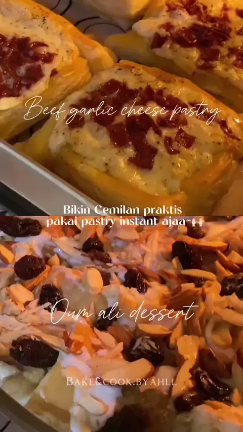 Beef garlic cheese pastry & oum ali dessert bikinnya super simple dan pasti enak bangtt🤤🤍 menggunakan puf pastry & petite croissant by @edofood.id 😍. Super praktis, tidak mengandung pengawet dan rasanya premium 🫶🏻. #pastry #dessert #resep # #baking #bakers
