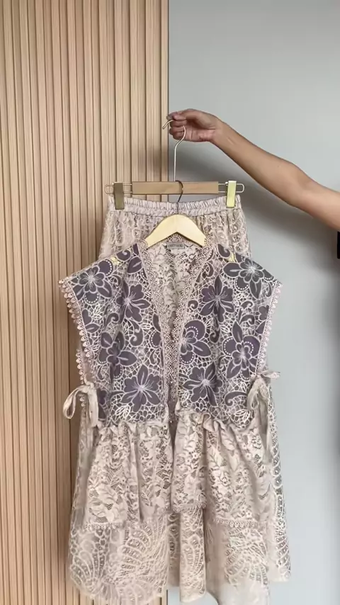 Vest brukat moca with rok mermaid silk cream🥰#outfitkondangan#outfitinspiration#OOTD#vest#vestbrukat