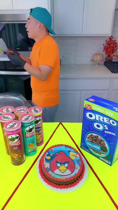 Angry bird cake vs chips desafio de sorvete! # angrybirds # chips # engraçado por Ethan Funny Family