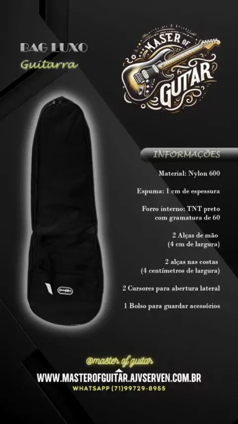 Bag / Soft para Guitarra modelo Luxo. Proteja seu instrumento com produtos de qualidade e que vão fazer a diferença em caso de acidentes, protegendo de verdade o seu instrumento. Nossos produtos fazem a diferença! Trabalhamos apenas com produtos de qualidade superior e modelos que realmente oferecem proteção ao instrumento, isso mantendo um preço acessível a todos os nossos clientes, mesmo nos modelos mais tops. #guitarra #contrabaixo #baixo #violao #music