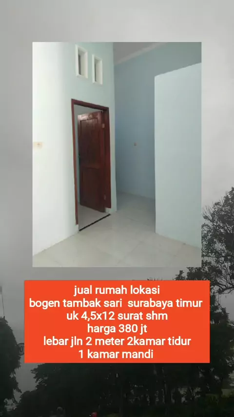 Di jual Rumah Alamat lengkap : Bogen - Tambaksari, Surabaya Spesifikasi : Ukuran 4,5x12 Surat SHM Kamar 2 Kamar mandi 1 Listrik 1300 PDAM Hadap Barat Teras Row 2 meter Harga : 380 juta #dijualrumahmurah #dijualrumahsurabaya #rumahdijualsurabayatimur