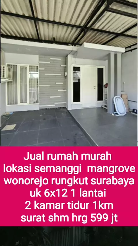 *JAMINAN TERMURAH,ONE GATE SYSTEM* Rumah Bangunan Terawat,siap Pakai. Lokasi Perum Green Semanggi. Surabaya Timur Luas tanah 72 m² Ukuran 6x12 (1 Lantai) Sertifikat SHM Kamar tidur 2 Kamar mandi 1 Listrik 1300 ; PDAM Hadap Selatan Carport Full Canopy Akses jalan 2 mobil Longgar *POINTS PLUS* : *• DEKAT KAMPUS DINAMIKA,RAYA MERR,DLL.* *DIJUAL CEPAT,HANYA 599 JT NEGO* #jualrumahsurabaya #rumahminimalis #rumahdijual #property #dijualrumah