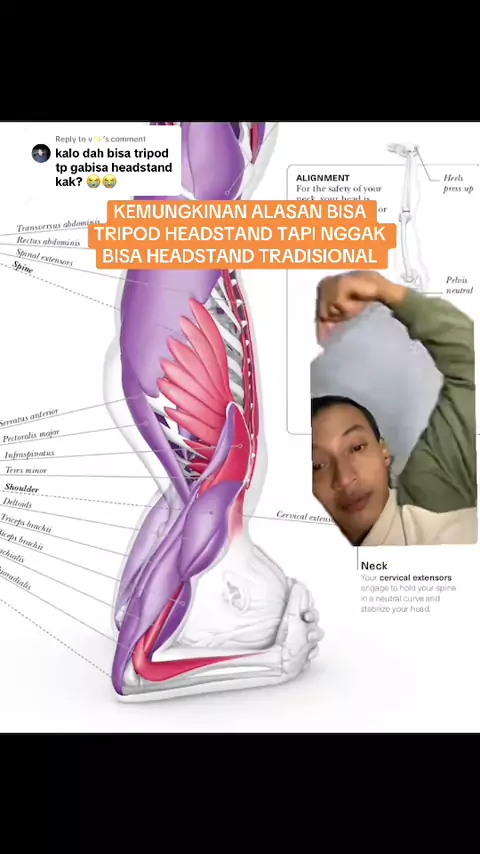 Replying to @v✨ kamu sendiri merasa leher sakit habis tripod nggak? Hati hati ya. Kasihan lehermu. Kuatkan lagi lengan dan bahu dan punggung atas serta core untuk mengurangi tekanan di leher.#tripodheadstand#headstand#inversion