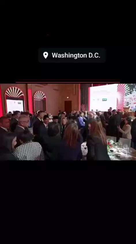 Moment Presidn RI Prabowo Subianto d Kerubutin Pengusaha AS usai saksikan Penandatangan MOU senilai 38,4 Million Dolar AS saat mnghadiri USIndonesia Business Summit 2026 yg d gelar d Washington DC 18 Feb 2026