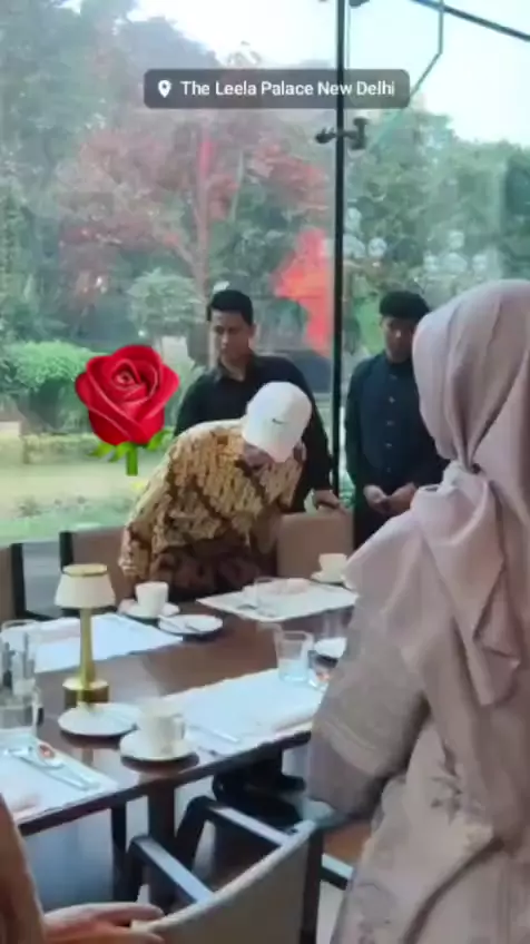 Moment Presidn K-7 Joko Widodo n Duta Besar Republik Indonesia untk India Ina Hagniningtyas Krisnamurthi ajk Buka Brsama 5 Mahasiswa asl Indonesia yg sdang mlaksanakan Prkuliahan AI diIndia untk Buka Brsama d The Leela Palace Hotel New Delhi India Kmis Mlm 19 Feb 2026
