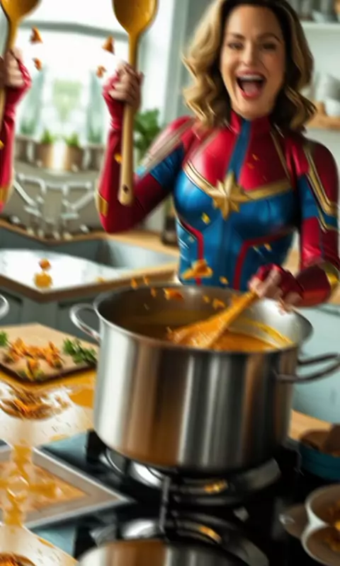 Capitã Marvel Fazendo o jantar. #osvingadores #marvel #capitamarvel