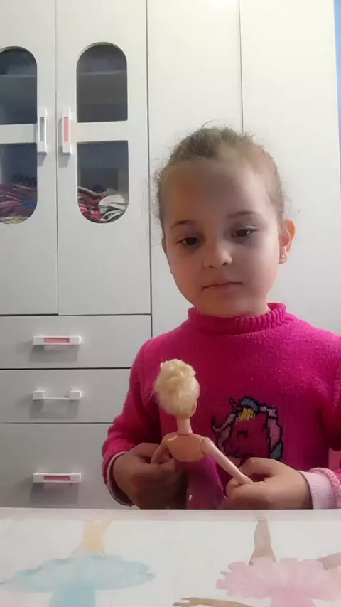 Pequena fazendo vídeo pra tia Terezinha