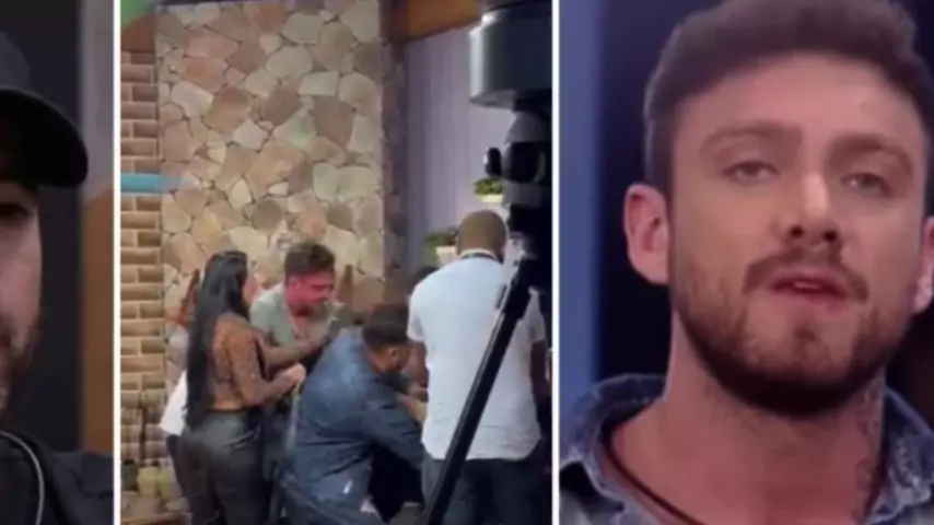#ExAFazenda Vini buttel #ExBBB Hadson Nery brigam em gravação na Record TV