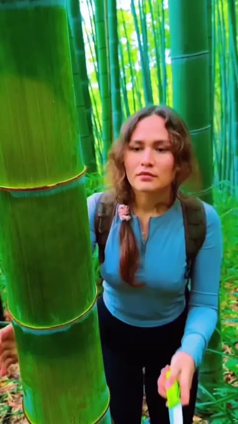 Tirando água do bambu