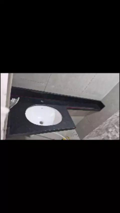 Lavatório em Granito Preto São Gabriel com cuba de louça braço sobre o vaso! #alegran1403 #viralreels #construção #reforma #banheiro