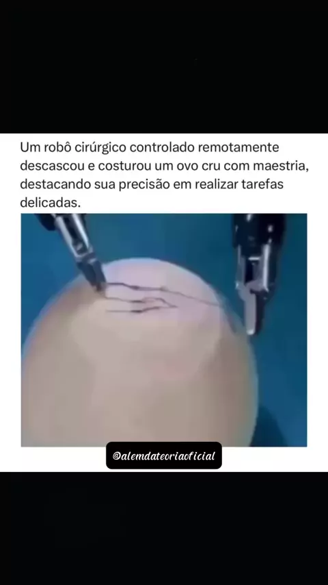 O Ovo da Precisão: A Robótica Elevada à Arte Um robô cirúrgico remoto descascou e costurou um ovo cru com precisão milimétrica, provando que a tecnologia pode superar limites e revolucionar a cirurgia com delicadeza e perfeição. #curiosidades #fatos #biologia
