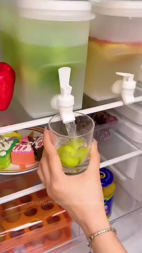 Suqueira de plástico, perfeita para eventos e para deixar na geladeira, com sucos e até água saborizada 😍🩷✨ O que acharam? #kwaishop #ofertas #suqueira #cozinha #compras