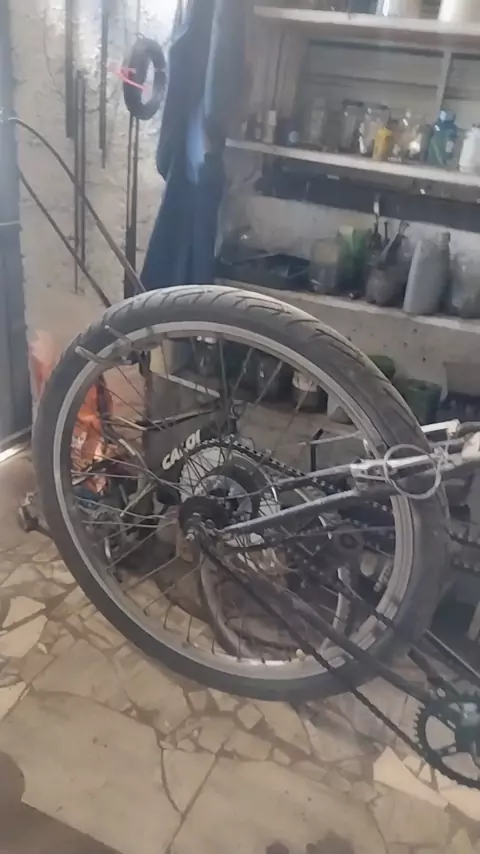 #kwaibredydasbikeHashtag troquei o peneu trazeiro da minha motorizada ficou top das galáxias
