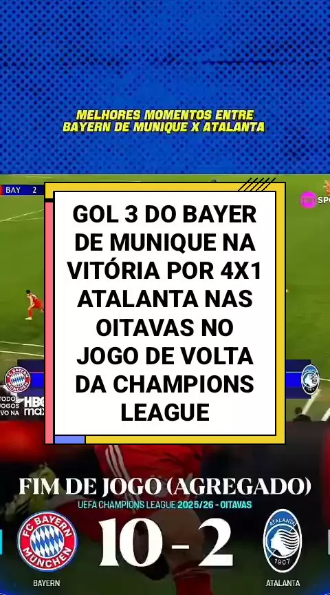 #NOTICIASESPORTIVA #Futebol GOL 3 DO BAYER DE MUNIQUE NA VITÓRIA POR 4X1 ATALANTA NAS OITAVAS NO JOGO DE VOLTA DA CHAMPIONS LEAGUE
