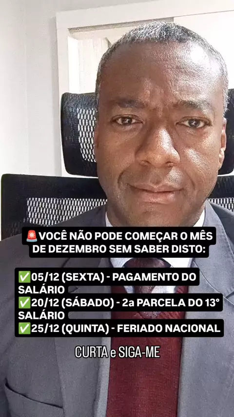 O mês de dezembro está bom pra você? ✅ O pagamento do salário no mês de dezembro deve ser pago até o dia 05 (5° dia útil). ✅ A segunda parcela do 13° salário deve ser paga até o dia 20/12. ✅ Caso o empregado trabalhe no feriado (Natal) terá direito de receber em DOBRO ou uma folga compensatória em outro dia. CURTA e SIGA-ME para receber novos conteúdos. #13salario #DecimoTerceiro #feriado #direitodotrabalho