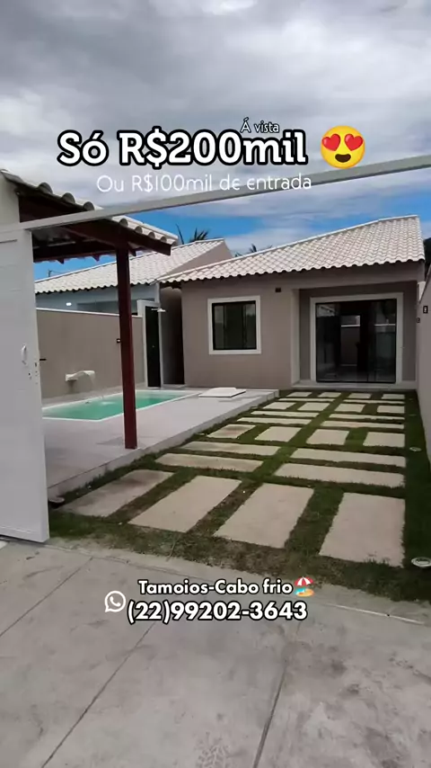 Casa de praia com piscina 😍 Só R$200.000,00 á vista ou entrada a partir de R$100mil direto com a construtora. ( Não aceita financiamento bancário) Casa modelo disponível no empreendimento composta por : 2 quartos sendo uma suíte, piscina, área gourmet, chuveirão, lavabo, vaga de garagem, sala de star, cozinha americana, área de serviço, casa de laje com telhado colonial esmaltado com estrutura pra outro andar . 📍 Condomínio sítio do Gravatá, tamoios, cabo frio, RJ . #casanova #cabofrio #casa...