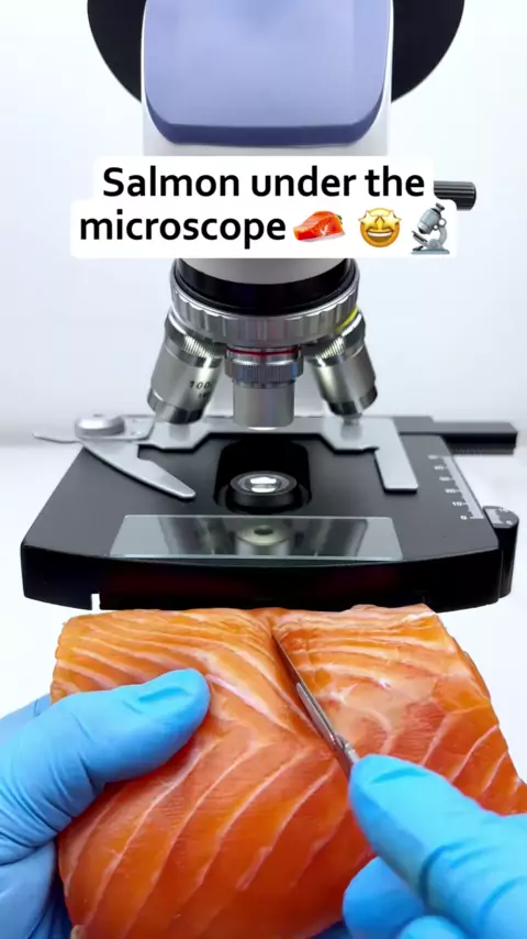 Oh meu Deus. eu nunca pensei que o salmão parecia assim quando ampliado 400 vezes sob um microscópio. # microscope # undermicroscope # #